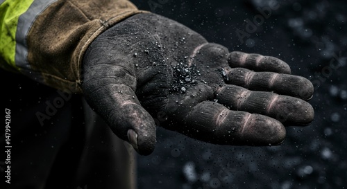 coal, dust, hand, dirty, grime, men at work, mine, industry, labor, environment, pollution, safety, glove, hard, work, gritty, dangerous, hazardous, dirt, black, ash, miner, power, energy, extraction, resource, industrial, manufacturing, chemical, soot, toxic, health, protection, equipment, environmental, harmful, mining