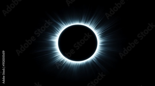Solar Eclipse with Bright White Corona and Dark Moon in Space