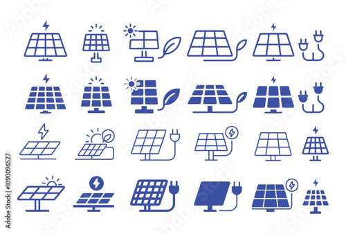 Solar panel icon set. Eco friendly clean energy and sun-powered electricity. Vector illustration.
