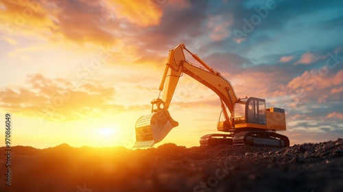 industrial, shovel, sunset, dirt, backhoe, construction, bulldozer, bucket, heavy, sunrise, machine, blue, cloud, sky, development, tractor, hydraulic, scoop, power, vehicle, land, silhouette, site, landscape, sun, digging, working, shoveling, background, dirtied, building, engineering, material, automation, robotic, innovation, infrastructure, architecture, equipment, software
