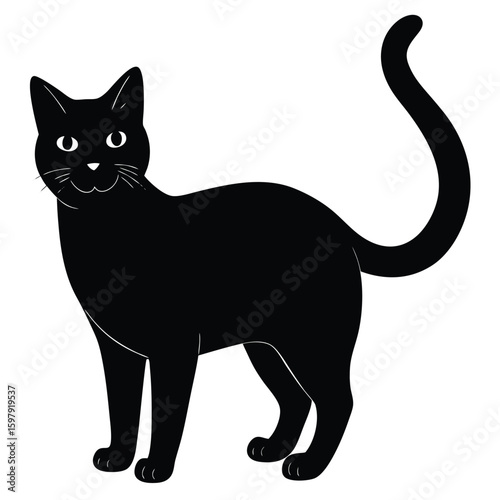 solid, black, filled, cat, clean, silhouette, white, background, with, a, curved, tail, animal, nature, forest, wood, wild, wilderness, night, dark, wise, wisdom, cognition, education, learning, school, illustration, design, graphic, logotype, icon, symbol