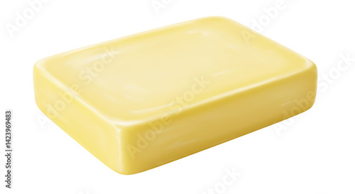 Solid Yellow Soap Bar with Smooth Surface and Transparent Background