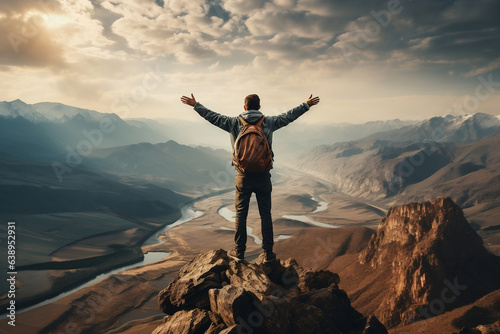 Solitary Inspiration, Man Conquers the Mountain in Gratitude