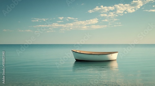 boat, sea, ocean, water, sky, calm, serene, peaceful, tranquil, quiet, horizon, cloud, blue, white, summer, day, still, solitude, peace, rest, relaxation, escape, journey, travel, nature, landscape, seascape, minimalism, simple, beauty, elegant, serenity, calmness, calmness, stillness, peacefulness, unwind, leisure, watercraft