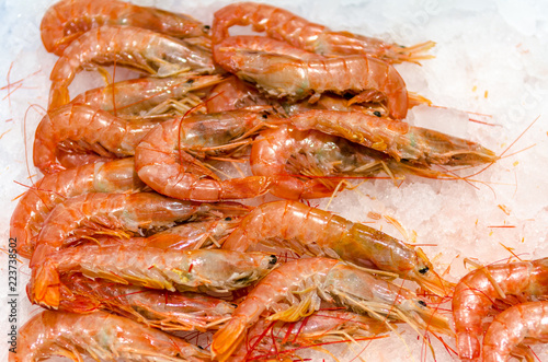 some prawns on crushed ice