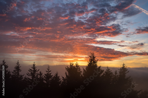 sunset, black forest, winter, heaven, sun, cloud, tree, view, hike, peak, mount, fog, haze, cold, conifer, christmas, december, forest