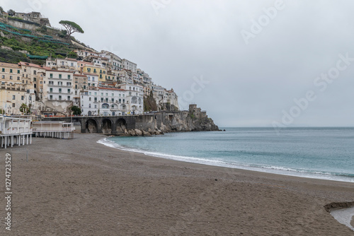 Sorrento Amalfi and Positano towns ona a bad winter weather the Sorrento Peninsula near Naples Italy