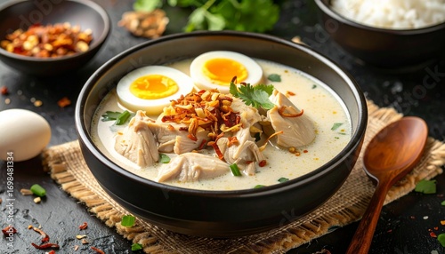 Soto Medan Medanese Chicken Soup. Traditional Indonesian Food