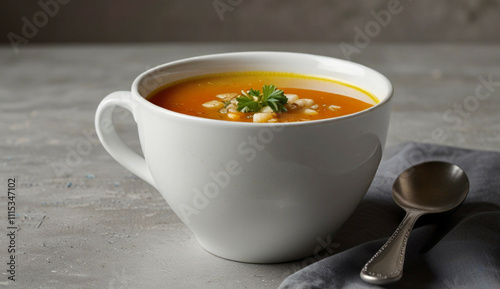Soup in a white cup Generative AI