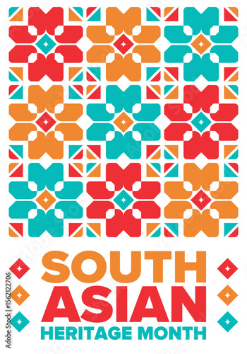 South Asian Heritage Month. Celebrate the diverse cultures and histories of South Asia. Traditional pattern. Creative art poster. Vector illustration