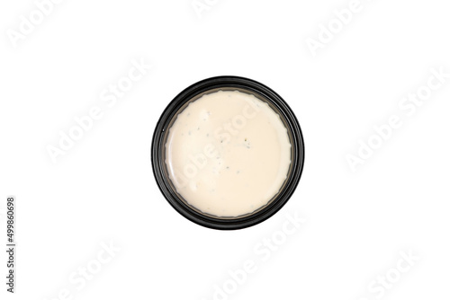 soy sauce in a dish for sauces on a white background