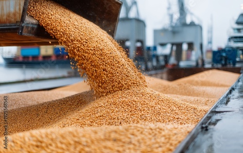 soybean, pouring, pile, ship, loading, agriculture, grain, transport, cargo, harvest, industry, shipping, container, vessel, economy, supply, trade, farmer, machinery, food, crop, production, storage, freight, landscape, bulk, logistic, equipment, import, export, raw, resource, business, scene, delivery, nature, work, unloading, field, efficiency, manual, maritime