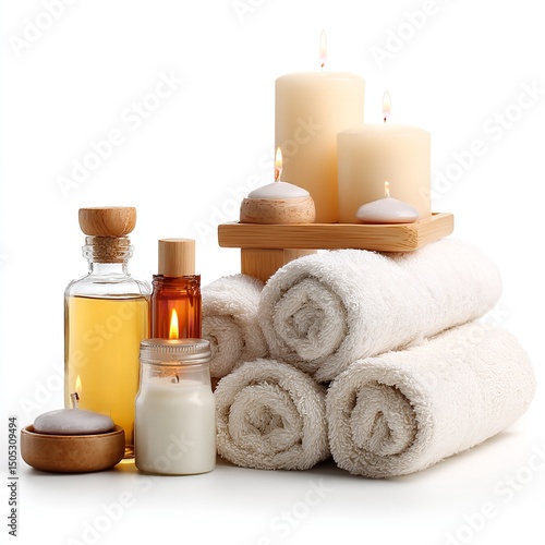 spa, wellness, relaxation, candle, oil, towel, beauty, aromatherapy, treatment, health, care, massage, therapy, zen, still, life, white, wood, glasses, bottle, flames, burn, clean, soft, stack, wooden, container, salon, cosmetic, product, luxury, calm, peace, serene