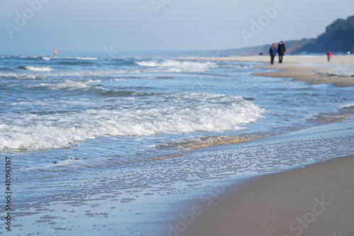 Spacer brzegiem morza. Zimowy spacer nad morzem.