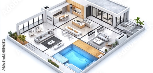 roomy, three-dimensional, floor, plan, house, open, kitchen, swimming, pool, isometric, interior, design, illustration, architecture, modern, apartment, indoor, style, contemporary, concept, residential, rendering, view, clean, comfort, comfortable, perspective, luxury, minimalist, home, building, vector, room, icon, construction, office, computer, city, model, project, furniture, industry, business, structure