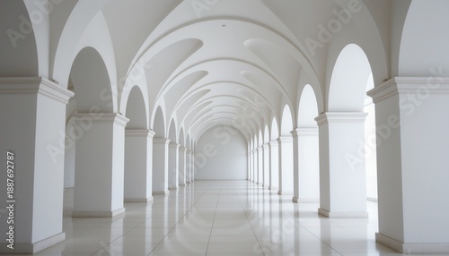 Spacious Architectural Hallway with Arched Ceilings and Minimalist Design Featuring White Walls