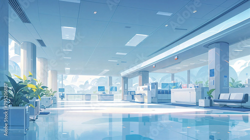 waiting, hall, area, lobby, panorama, reception, seating, blue, hospital, bank, aerodrome, company, business, terminal, flat, illustration, screen, chair, scoreboard, display, modern, city, room, indoor, vacant, nobody, health care, facility, interior, medicals, institution, building, furniture, clinical, urban, atmosphere, isolation, furnished, wallpaper, decoration, banner, advertising, printing