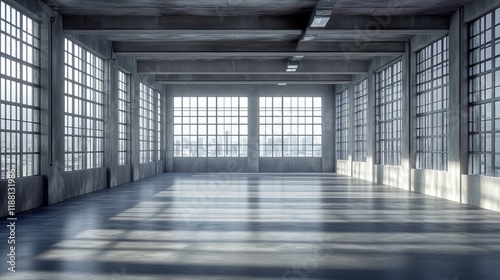 interior, loft, industrial, space, window, concrete, floor, sunlight, empty, room, building, architecture, design, modern, urban, city, view, open, large, warehouse, factory, studio, blank, background, light, shadow, grey, wall, ceiling, expanse, huge, airy, bright, clean, minimalist, simple, structure, beam, pane, glasses, perspective, wide, high, hall, commercial, property