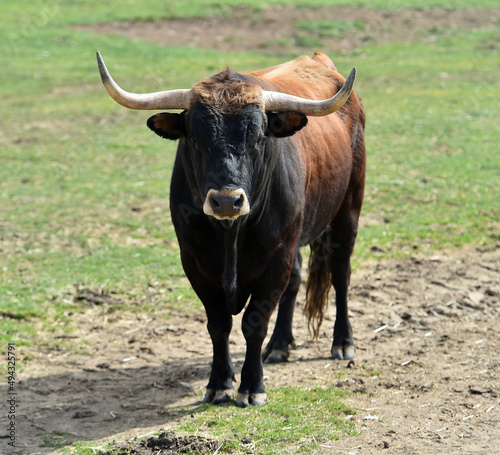 spanish bull with big horns in the spanish cattle raising