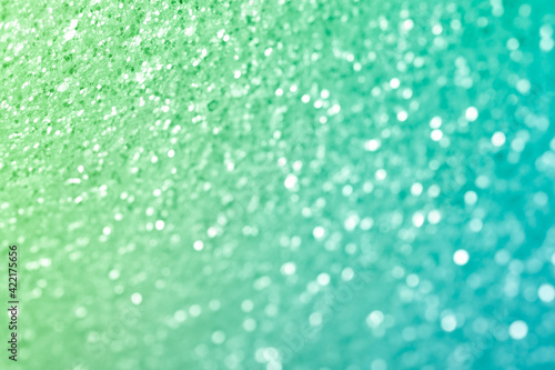 Sparkling abstract light green background. Bright gradient glitter with blur effect. Holiday abstraction close-up