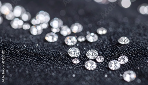gem, gem, crystal, diamond, rhinestone, sparkle, glistering, shine, brilliant, precious, valuable, luxury, elegant, beautiful, bright, clear, transparent, reflective, light, dark, black, fabric, textile, material, surface, texture, background, scattered, small, tiny, numerous, many, group, collection, closeup, macro, detail, jewellery, accessory, fashion, decoration, craft, art, design, glamour, wealth, rich, expensive, purity