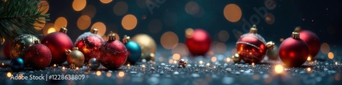 Sparkling ornaments scattered on a dark background, Christmas Tree, Winter Wonderland