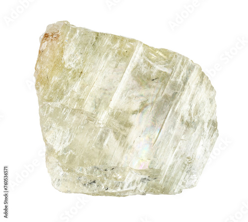 specimen of natural raw hiddenite rock cutout