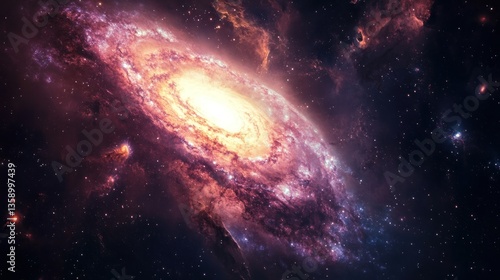Spectacular cosmic spiral galaxy with vibrant hues of purple and gold
