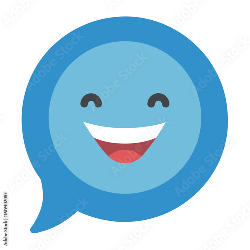 Speech bubble face smile vector icon on white background.