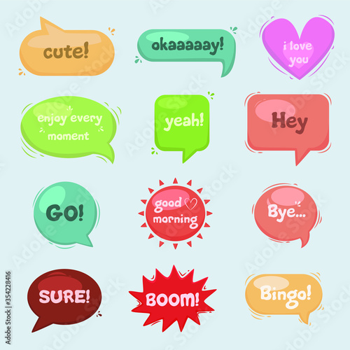 set, label, design, illustration, element, cloud, message, template, badge, speech, bubble