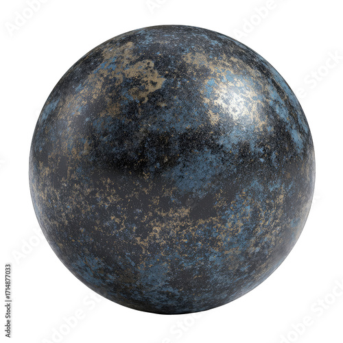 sphere, round, ball, metal, blue, gold, mottled, dark, pattern, texture, surface, design, ceramic, stone, abstract, geometric, shape, material, decorative, textured, speckled, variegated, iridescent, glossy, reflective, colours, art, digital, image, visual, element, three-dimensional, object, representation, rendering, optical