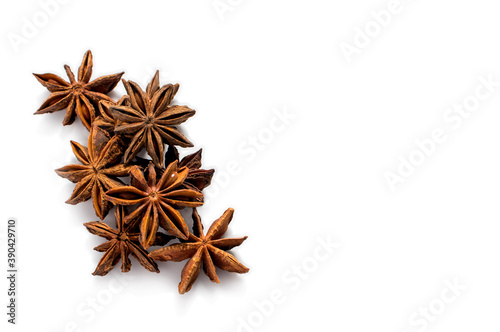 Spice star anise close-up, isolate on a white background with a place for text