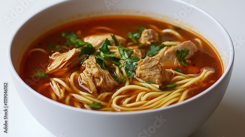 soup, noodle, chicken, spicey, food, meal, dish, lunch, dinner, cookery, broth, hot, tasty, delicious, healthy, comfort, bowl, white, garnish, parsley, cooking, receipe, eatery, asian, oriental, chinese, japanese, korean, vietnamese, thai, savoury, warm, fresh, ingredient, vegetable, carrot, egg, noodle, protein, diet, eat, favor, aroma, appetising, hunger