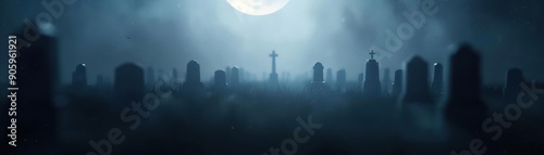 Spooky graveyard under a foggy moon