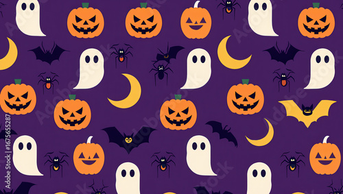 Spooky Halloween Night Pattern Festive Ghosts, Pumpkins, and Bats Background Design