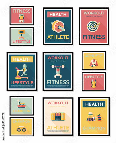 Sport poster flat banner design flat background set, eps10