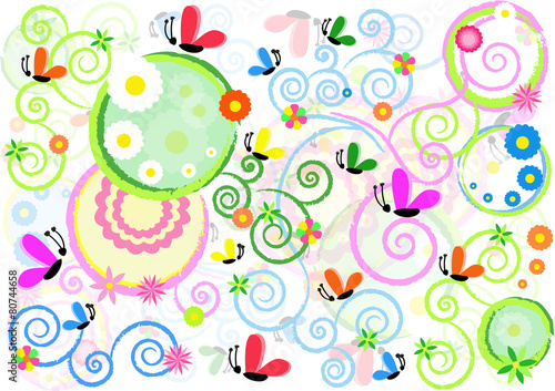 spring, flower, sun, butterfly, daisy, colours, nubes, shape, circle, season, stylised, garden, nature, meadow, green, grass, countryside, picnic, weather, sunny, background, love
