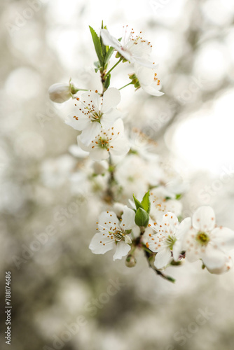 Spring blossom background. Beautiful nature scene with blooming tree on sunny day. Spring flowers