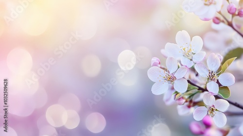 Spring Blossom Branch with Pastel Bokeh Background Floral Nature Image