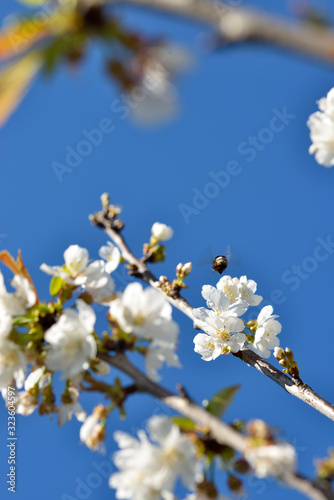 botany, leaf, floral, natural, beautiful, beauty, season, background, garden, agriculture, bee, biology, bloom, blooming, blossom, blue, tree branch, cherry, cherry flower, close, concept, conceptual, day, daylight, flora, flower, hatching, nature, nobody, outdoors, outside, plant, selective focus, sky, spring, tree, vertical, white, white flower
