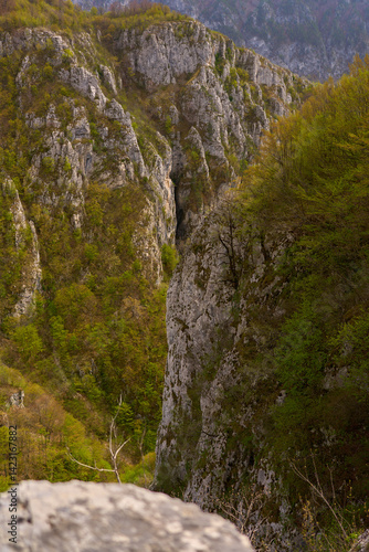 cliff, rock, mountain, forest, tree, spring, foliage, nature, rugged, landscape, vertical, terrain, wilderness, green, vegetation, overcast, wild, slope, scenic, natural, infused, environment, sky, weathered, geology, cloudy, craggy, forested, travel, layer, untouched, remote, contrast, peak, texture, shadow, panorama, crown, dense, alpine, elevation, hill, atmospheric, serene
