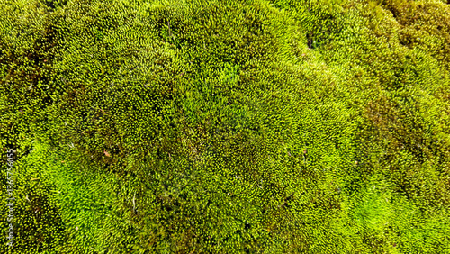 Spring Green moss close-up for design background. Selective focus