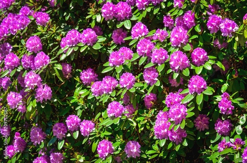 Spring natural background. Beautiful blooming rhododendrons in the park.