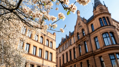 spring, blossom, architecture, building, flower, tree, vibrant, bloom, exterior, design, beauty, balcony, elegance, urban, nature, peaceful, sunny, pastel, foliage, aesthetic, residential, greenery, seasonal, decoration, intricate, harmonious, city landscape, picturesque, charme, colourful, growth, calmness, landscape, delightful, serene, modern, appealing, ornamental, cultural, historic, lifestyle, warm, inviting