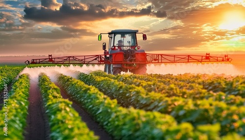 Springtime Defense: Farmer Sprays Pesticide in Soybean Field for Crop Protection