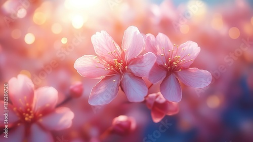 Springtime. Pink cherry blossom in golden bookend on a vibrant blue background. Happy Chinese New Year, 4k image