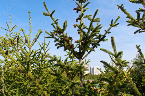 tree, sky, nature, plant, green, spring, tree branch, blue, summer, natural, tree, season, flora, landscape, spruce, branch