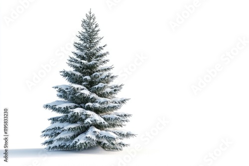 spruce covered with snow isolated on white background