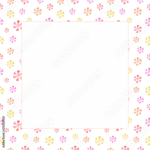 frame, candy, square, watercolor, sweet, template, background, dessert, food, copy, space, white, border, hand, drawn, banner, striped, peppermint, dotted, round, caramel, cane, poster, romantic, text, pastel, pattern, pink, yellow, red, paper, greeting, card, design, invitation, scrapbooking, holiday, cute, christmas, birthday, celebration, postcard, colourful, print, decoration, festive, illustration, cartoon, party, element