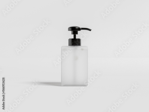 square Pump bottle mockup, cubic shape liquid dispenser bottle, elegant translucent plastic packaging, frosted plastic lotion container, frosted glass dispenser, liquid product pump bottle mockup